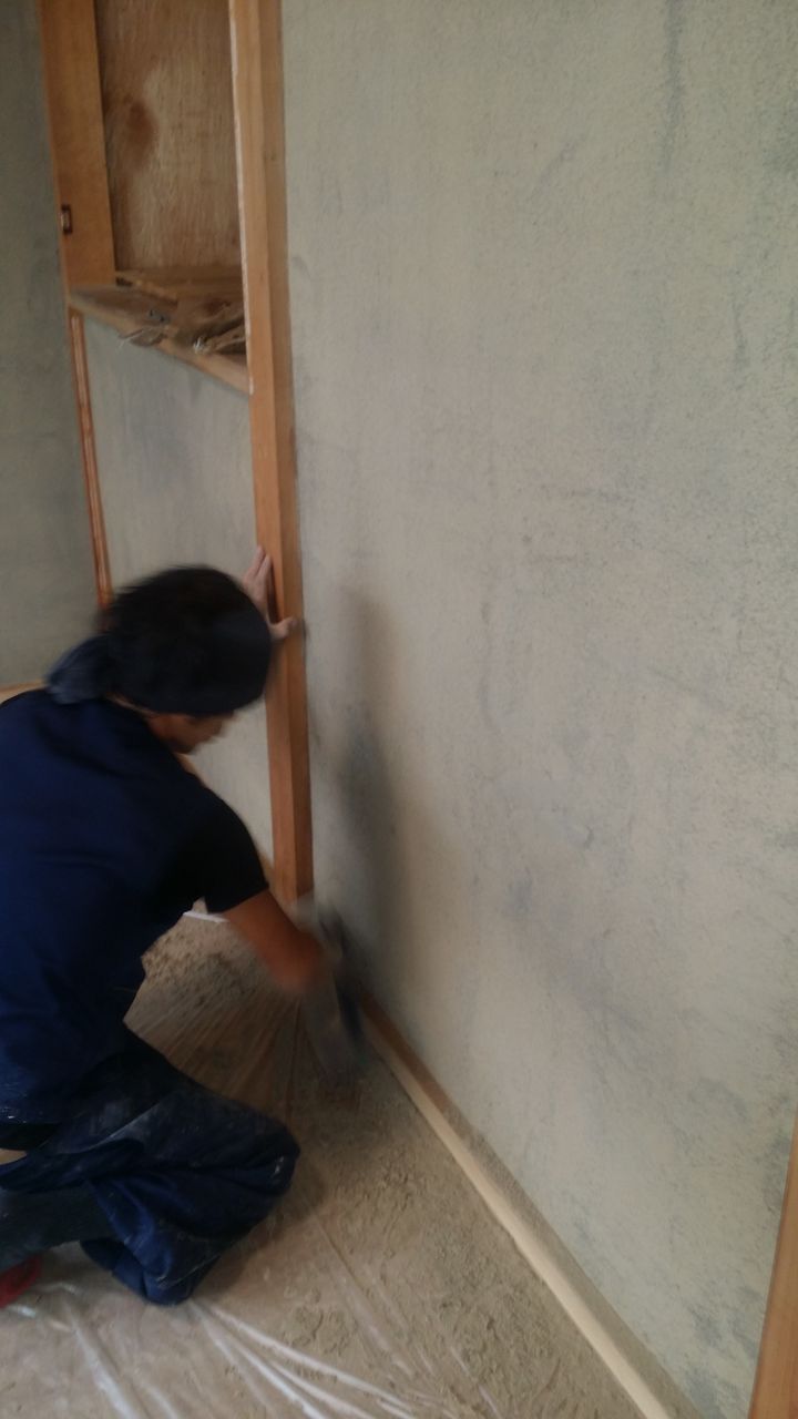 古くなった漆喰を全て剥がします